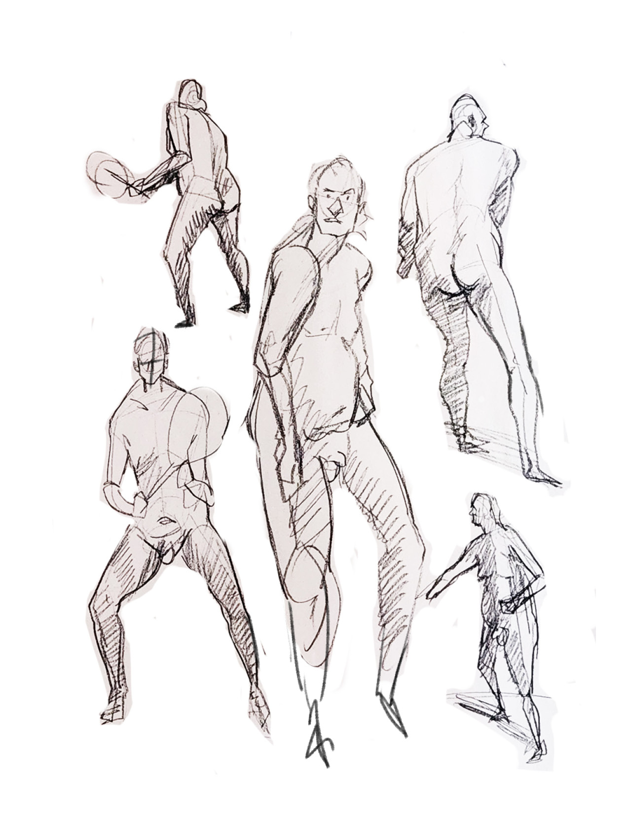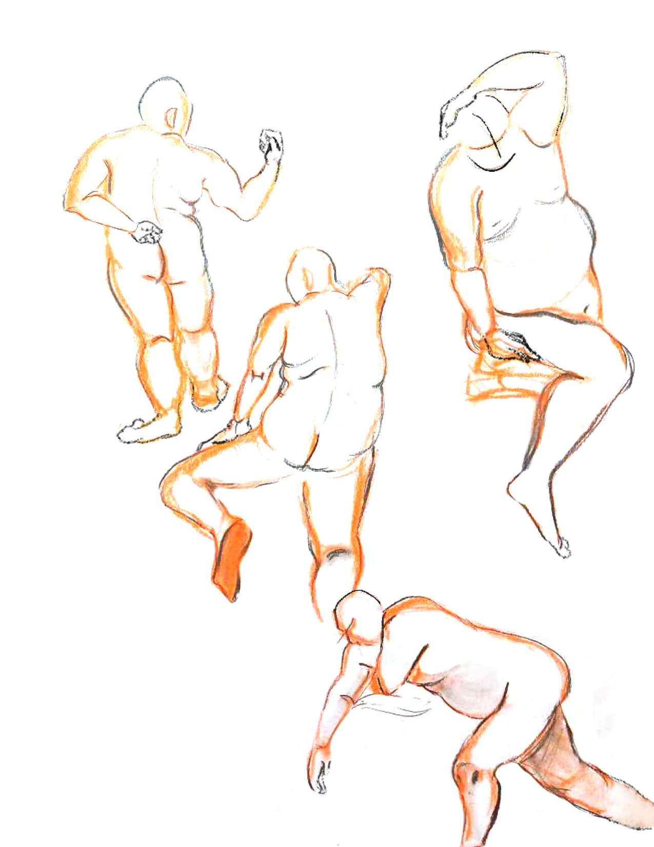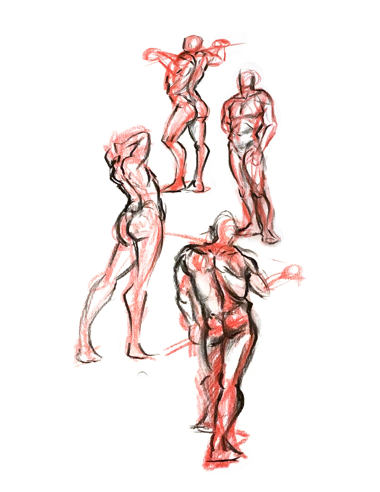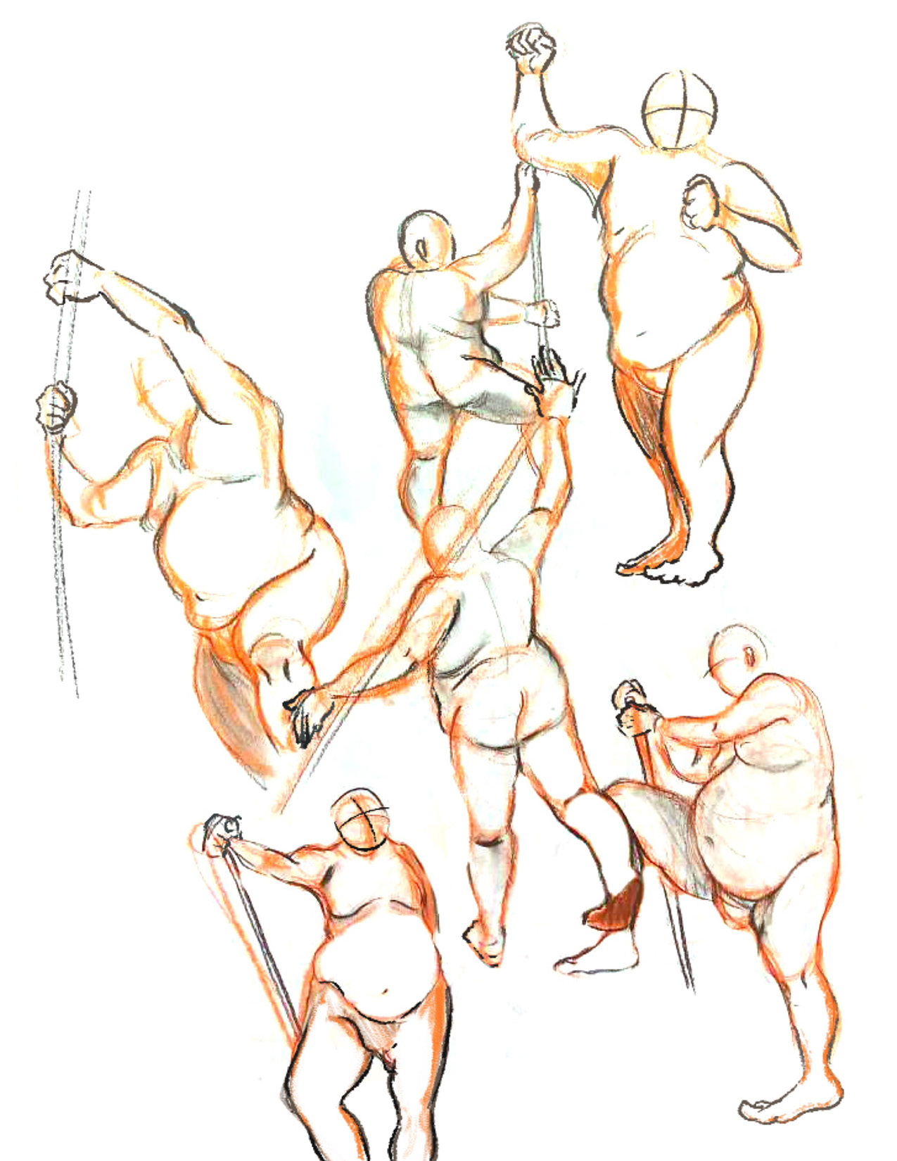 Still working with quick gestures, we draw from the live costumed model to recreate archetypal scenes from myth and legend, such as Tolkien's Gollum and Prospero from Shakespeare's The Tempest.