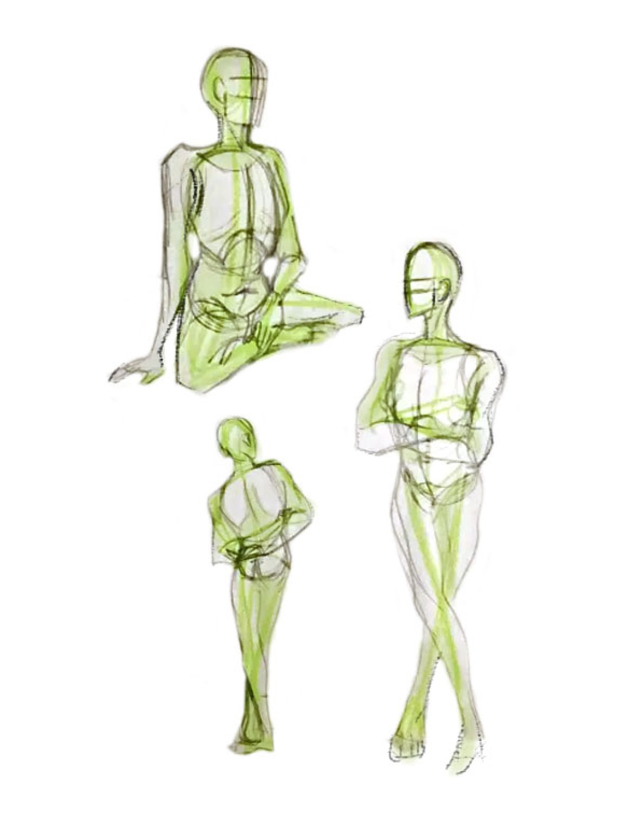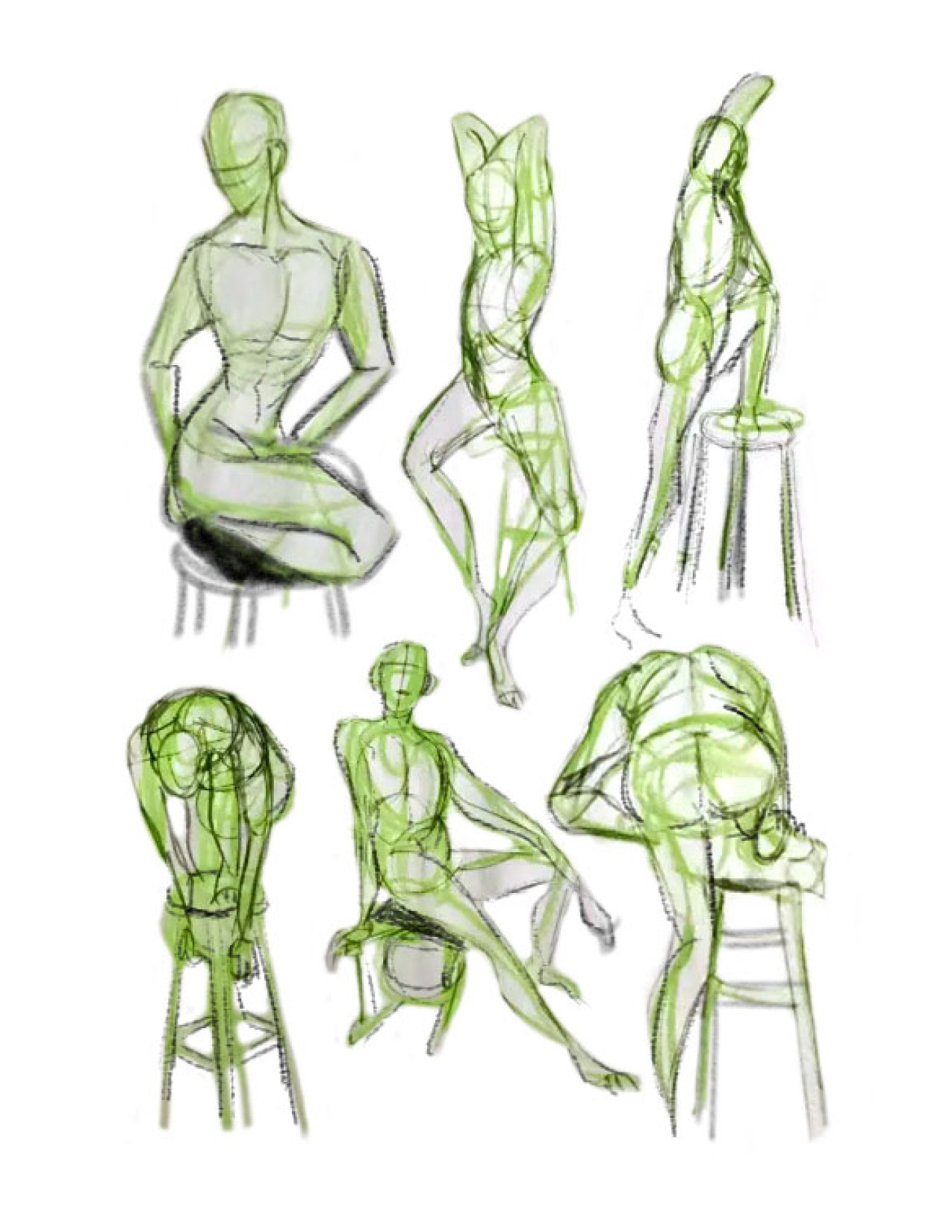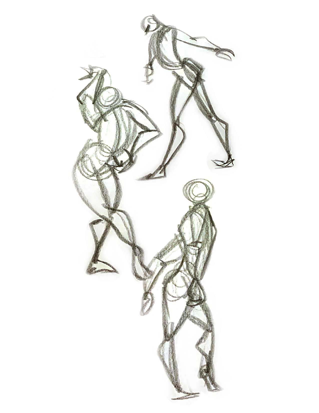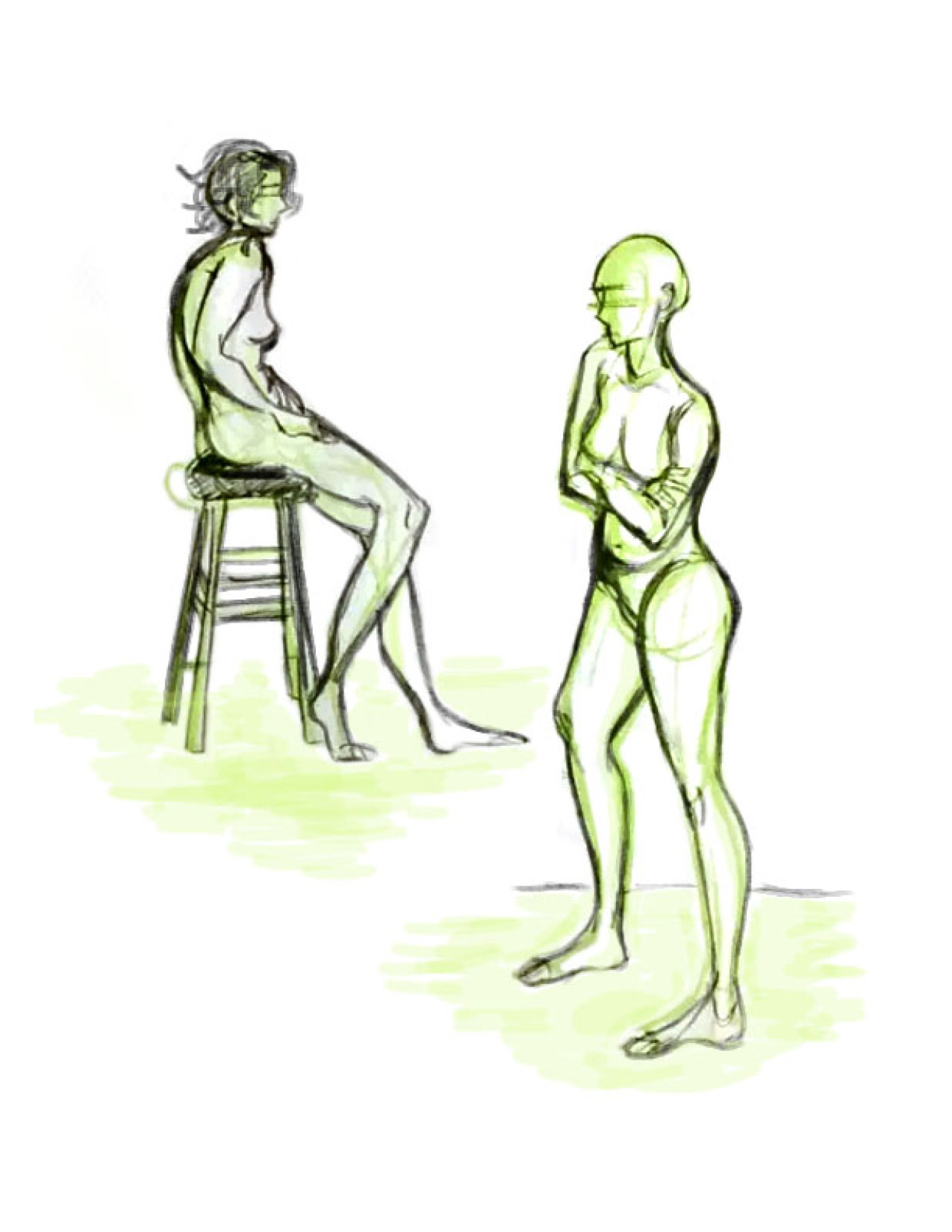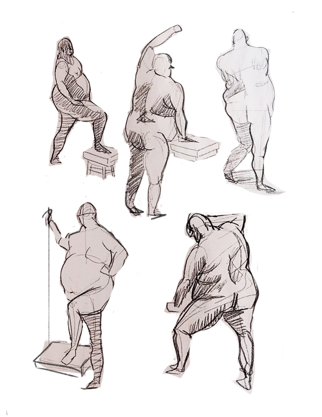 Still working with quick gestures, we draw from the live costumed model to recreate archetypal scenes from myth and legend, such as Tolkien's Gollum and Prospero from Shakespeare's The Tempest.