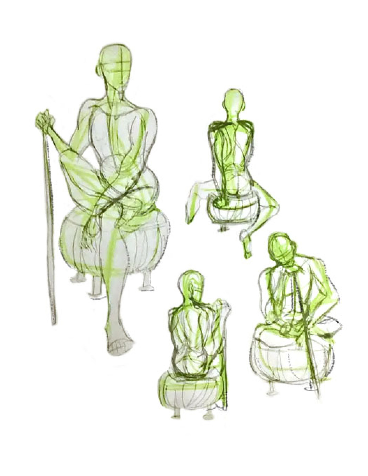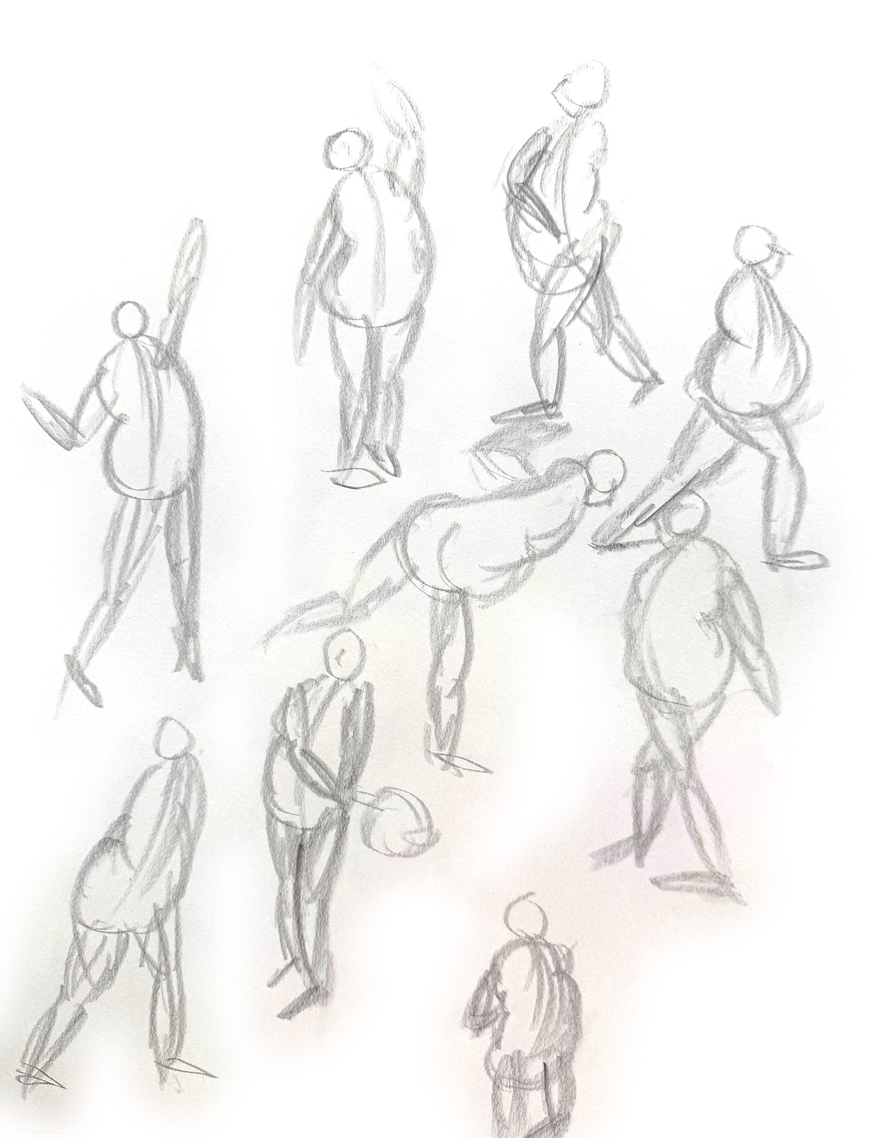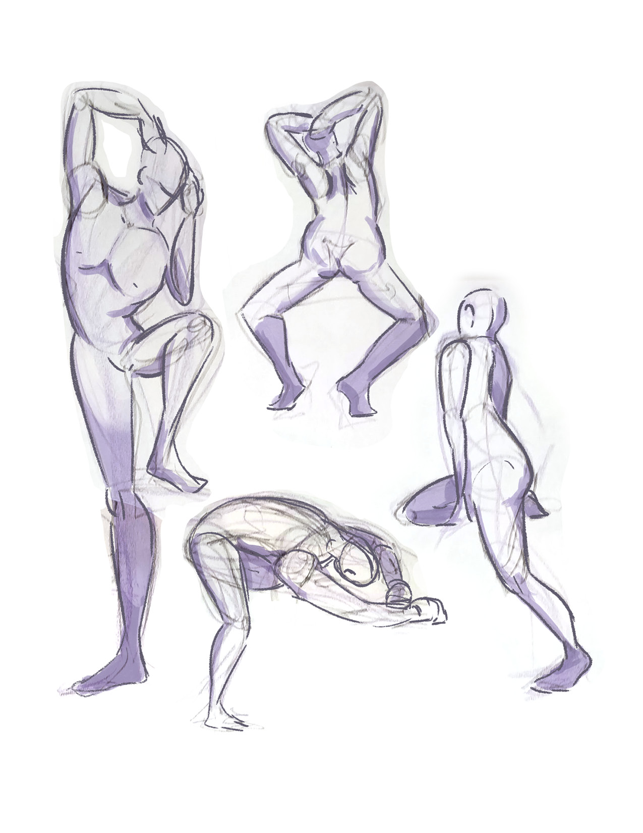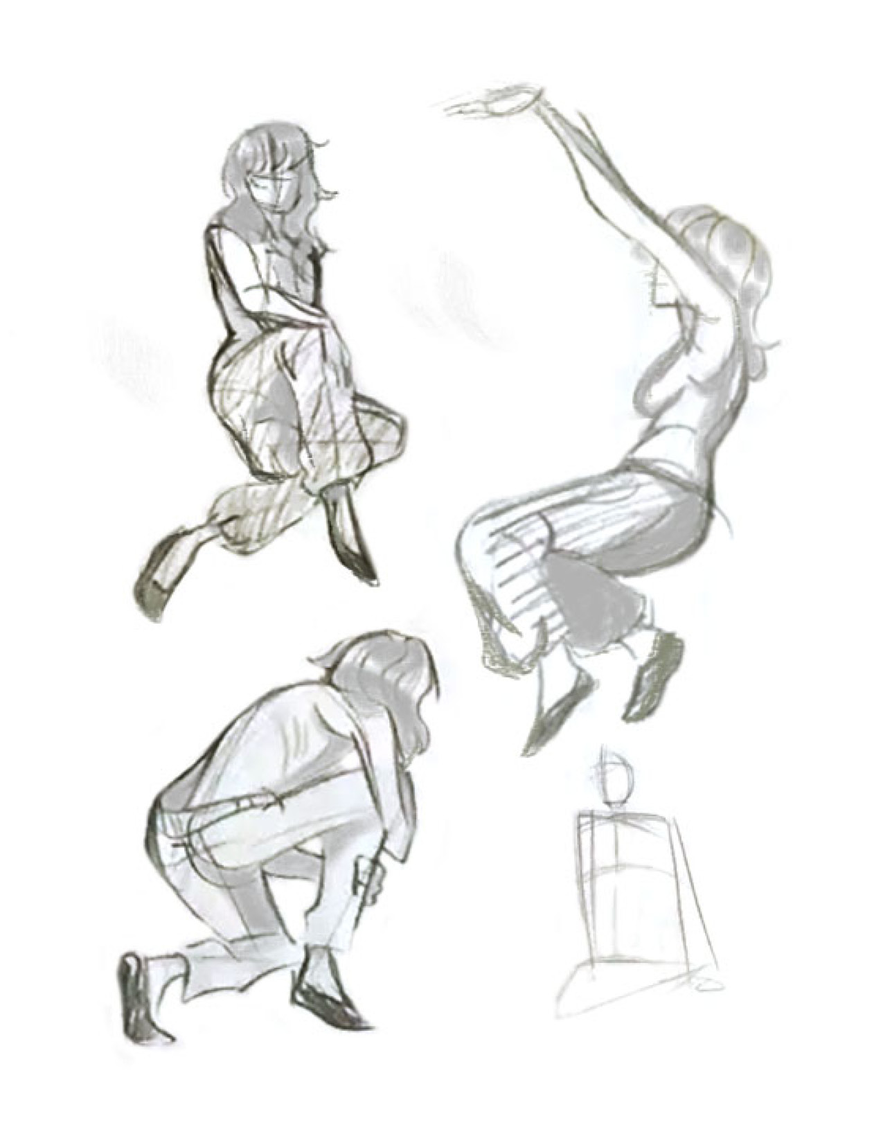 Still working with quick gestures, we draw from the live costumed model to recreate archetypal scenes from myth and legend, such as Tolkien's Gollum and Prospero from Shakespeare's The Tempest.