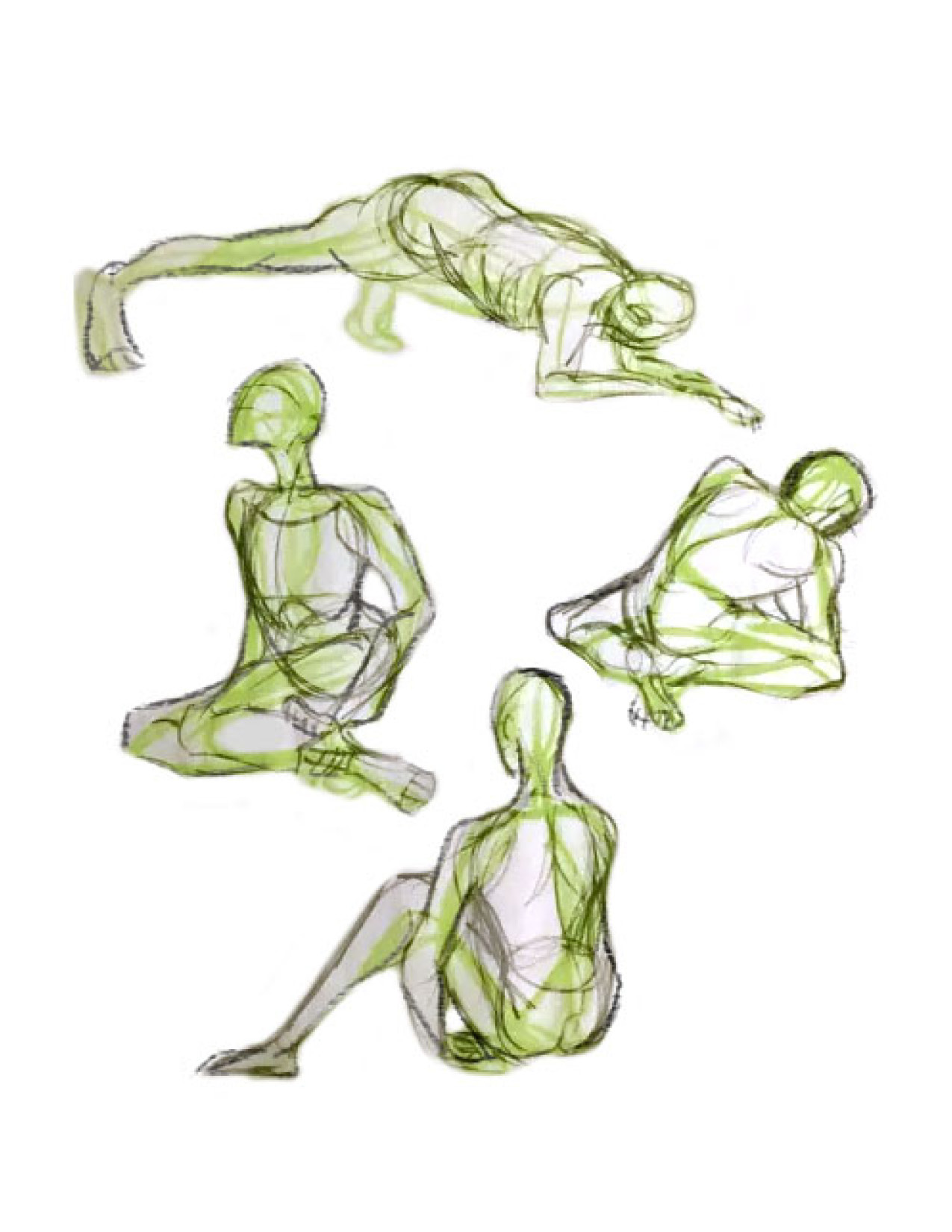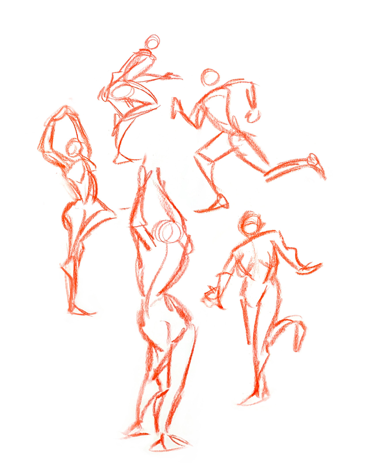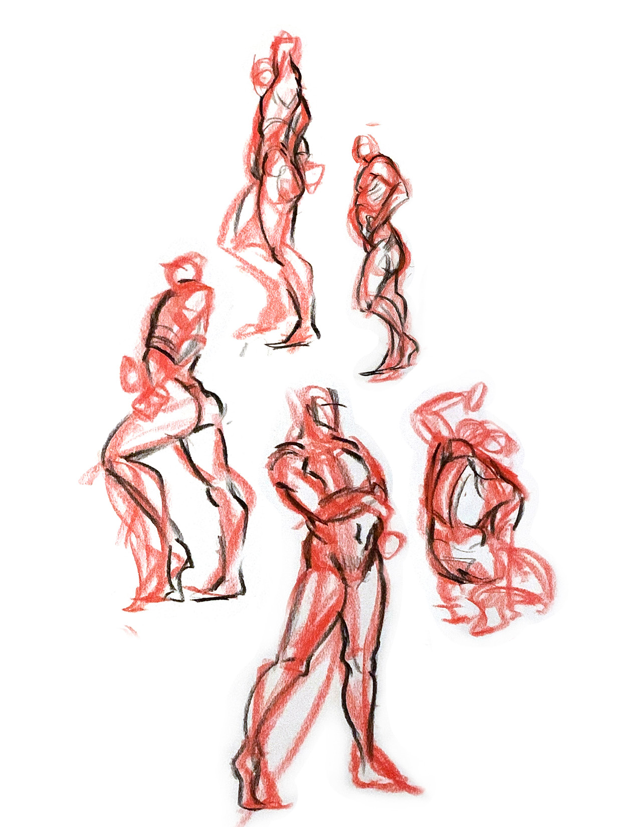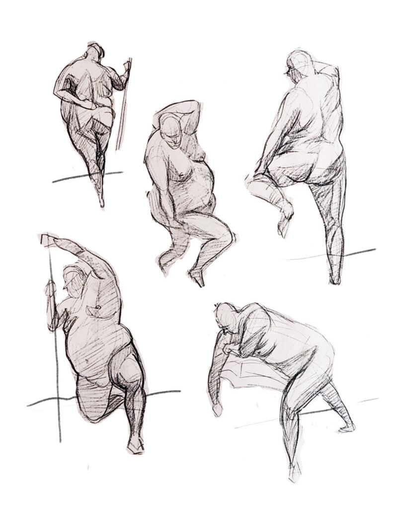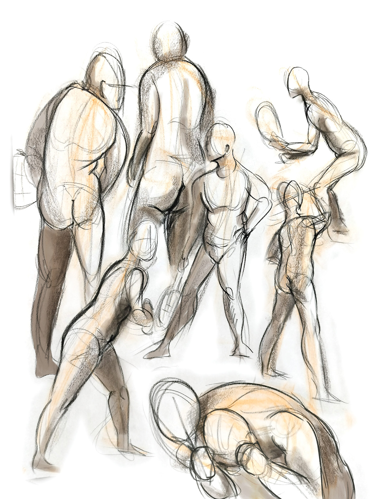 Still working with quick gestures, we draw from the live costumed model to recreate archetypal scenes from myth and legend, such as Tolkien's Gollum and Prospero from Shakespeare's The Tempest.