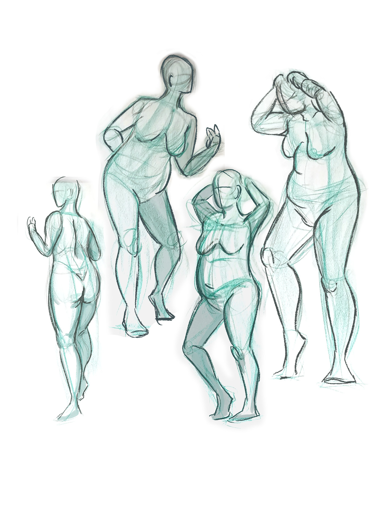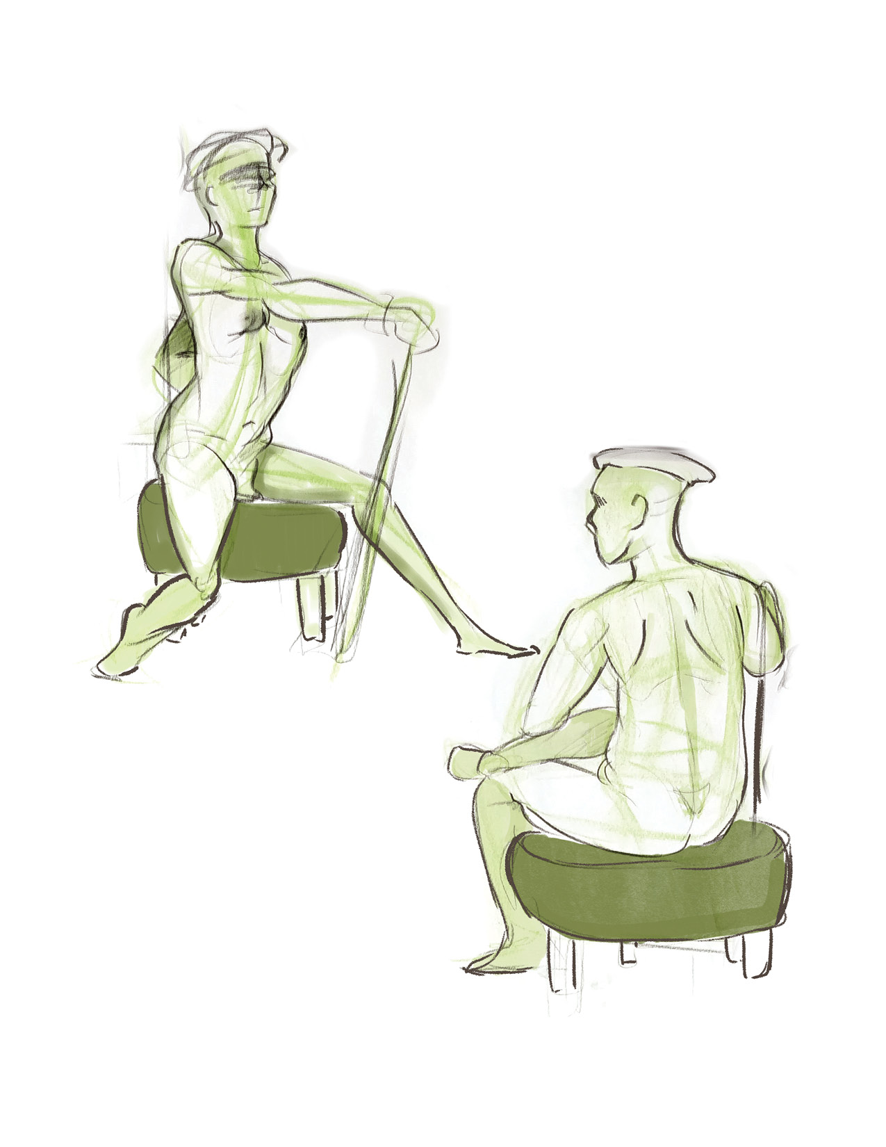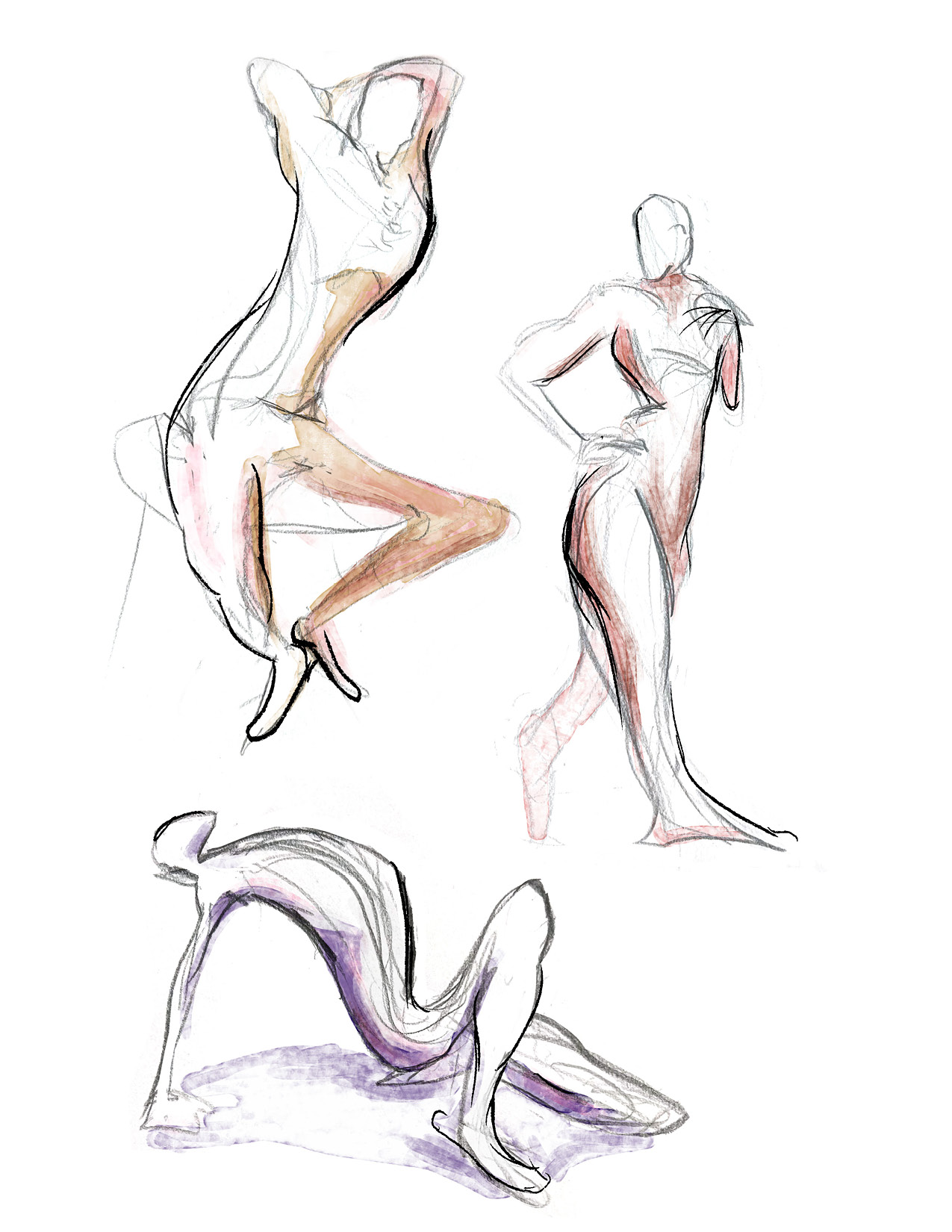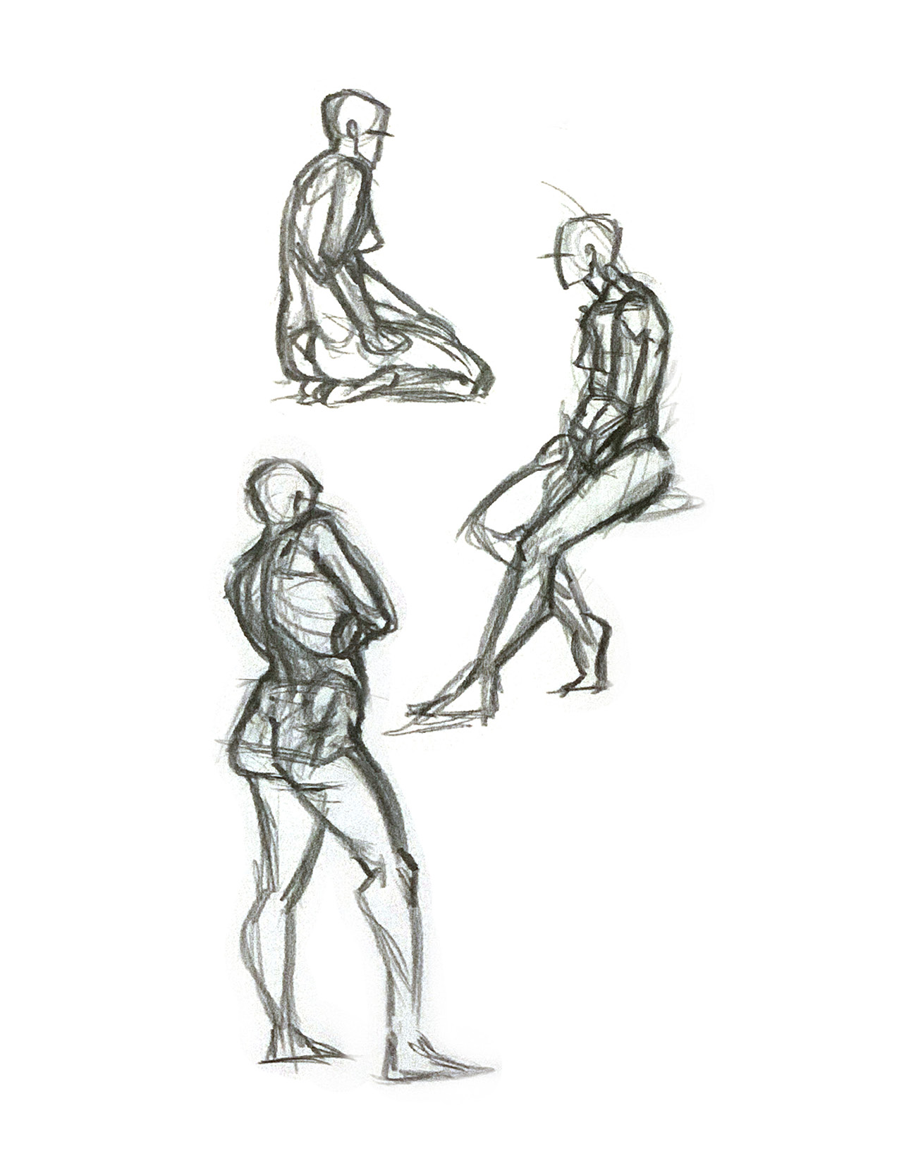 Still working with quick gestures, we draw from the live costumed model to recreate archetypal scenes from myth and legend, such as Tolkien's Gollum and Prospero from Shakespeare's The Tempest.