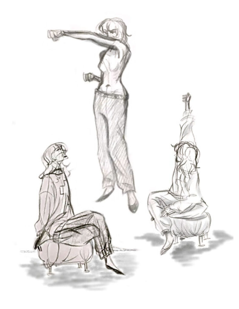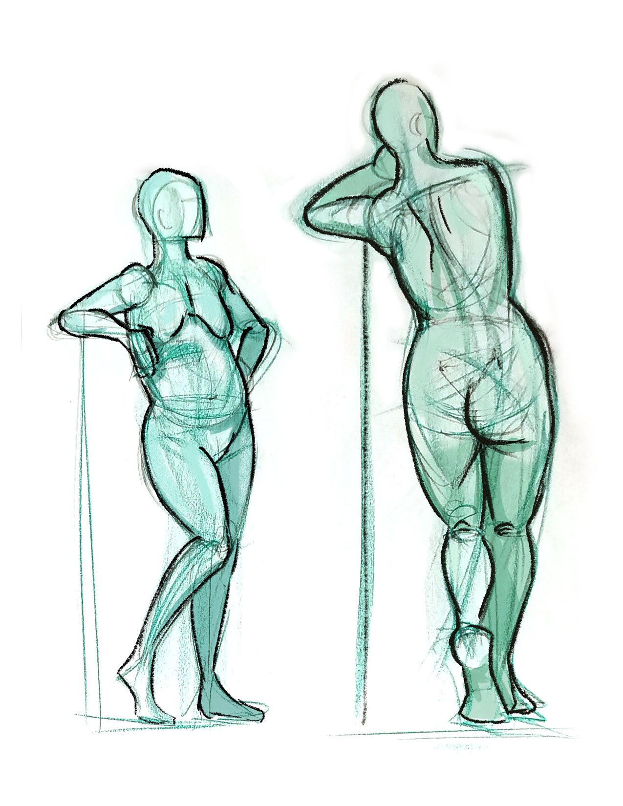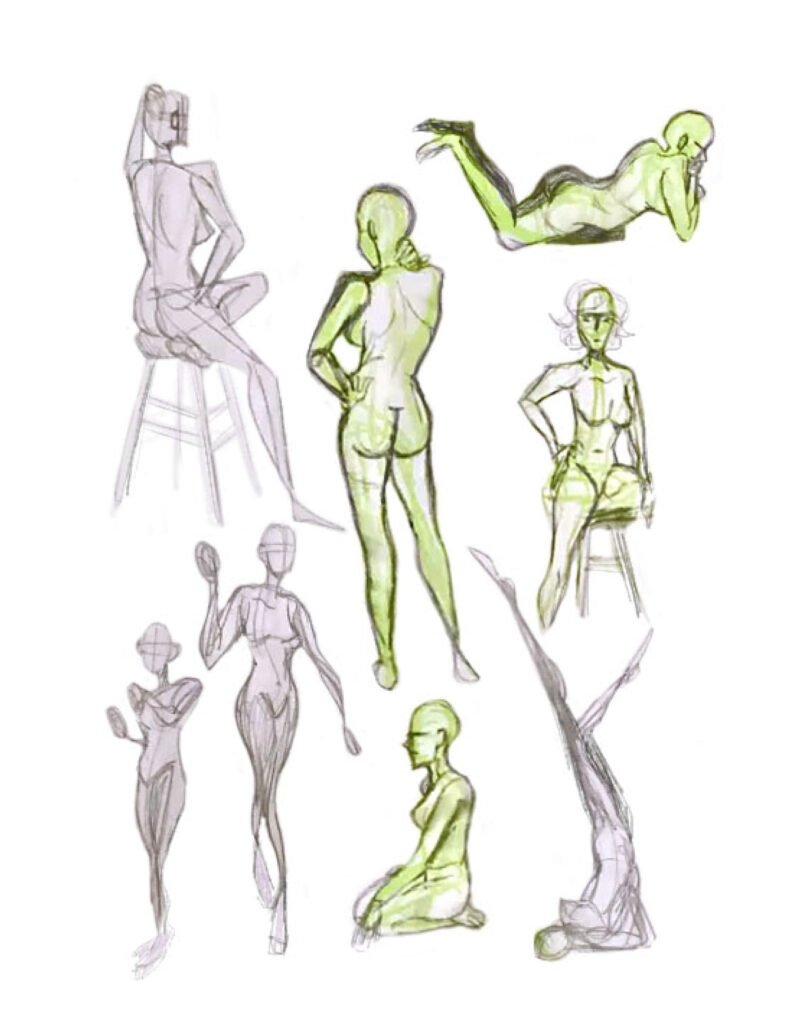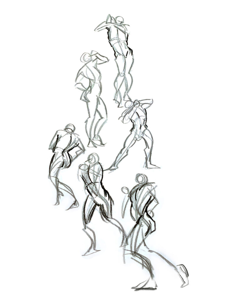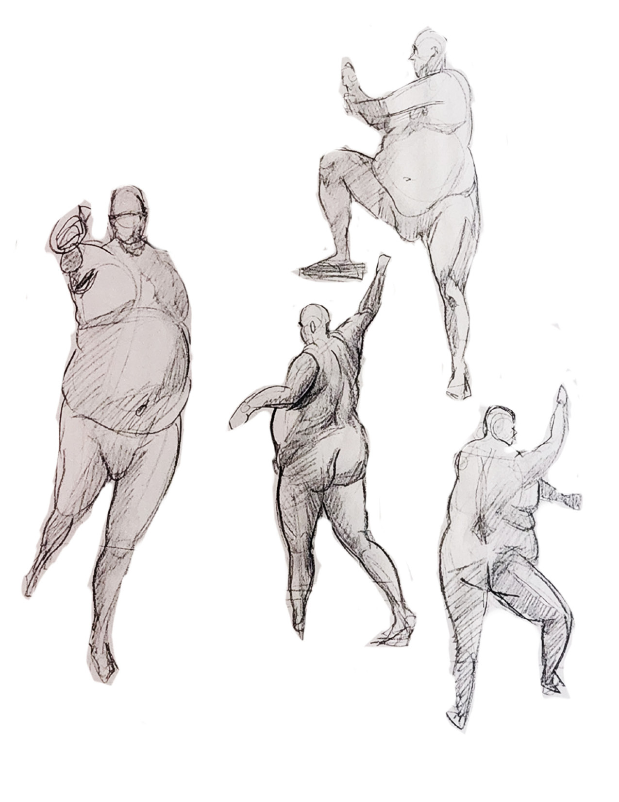 Still working with quick gestures, we draw from the live costumed model to recreate archetypal scenes from myth and legend, such as Tolkien's Gollum and Prospero from Shakespeare's The Tempest.